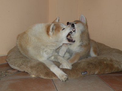 unserer jüngsten Hündin Harumi, die gerade mit einem